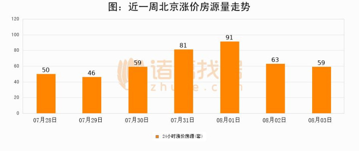 根据诸葛找房数据显示,北京24小时涨价房源量为59套,较08月02日减少4套,环比下降6.3%。与此同时,涨价房源占比小幅回落,对于购房者来说是一个入市窗口期,购房者可抓住时机入市。